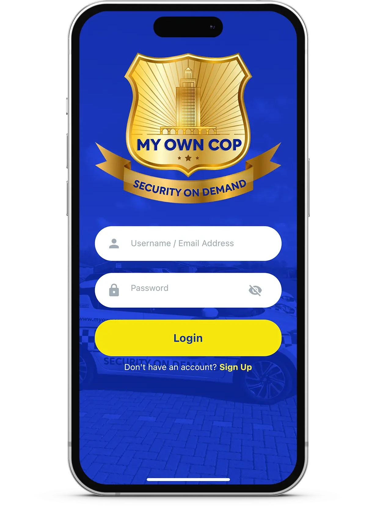 And for those with wider obligations, the My Own Cop ‘Security on Demand’ service has all the benefits of the ‘Lone Worker’ App plus the ability to have a Mobile Security Officer attend your location, home, or Business, all at the click of an App